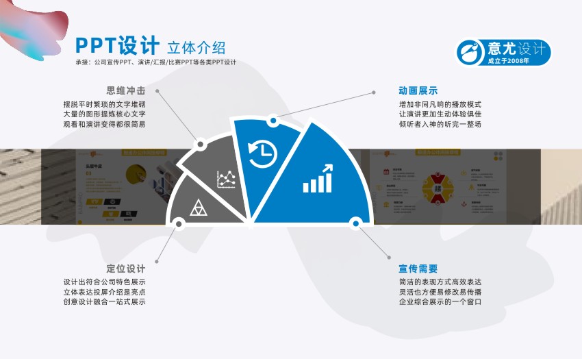 蘇州意尤文化傳播有限公司是一家有著多年廣告設(shè)計經(jīng)驗的蘇州知名廣告企業(yè) 主要業(yè)務(wù)有蘇州PPT設(shè)計、蘇州產(chǎn)品PPT設(shè)計、蘇州企業(yè)PPT設(shè)計、蘇州會議PPT設(shè)計、蘇州項目PPT設(shè)計、企業(yè)VI設(shè)計、設(shè)計印刷宣傳冊/樣本/單頁/名片等 自2007年成立以來,蘇州意尤廣告公司與蘇州及蘇州各市的幾百家中外企業(yè)進行了廣告設(shè)計合作,經(jīng)過多年發(fā)展公司已形成了以企業(yè)PPT設(shè)計、企業(yè)VI設(shè)計,廣告設(shè)計,廣告印刷,樣本設(shè)計,宣傳冊設(shè)計,名片印刷,菜譜制作,單頁,宣傳單等一批特長業(yè)務(wù),相信在各位新老客戶的關(guān)心下,本公司會得到更大的發(fā)展,同時為客戶的發(fā)展宣傳保駕護航。